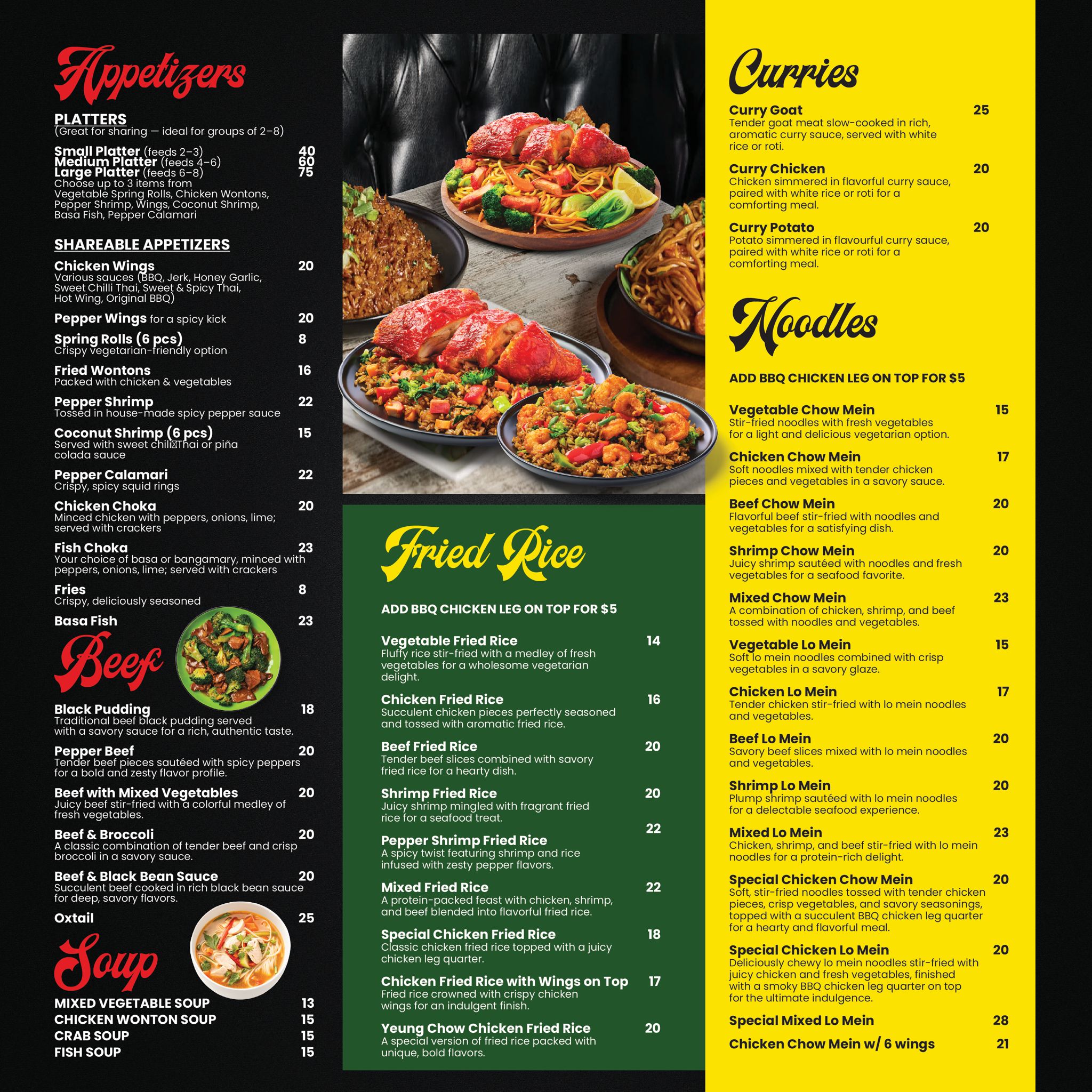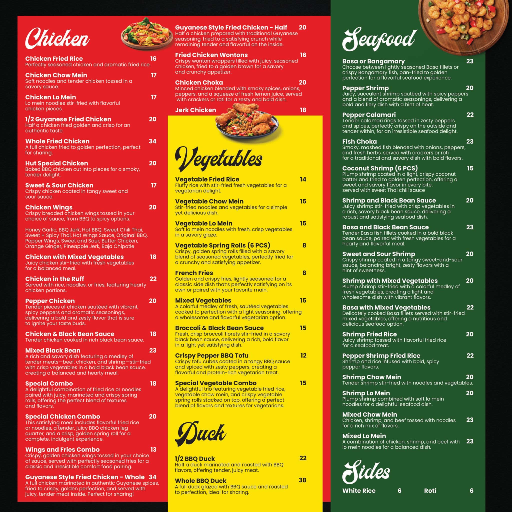 We are a Halal (pork-free) restaurant using the finest cuts of Halal meats and products. Our menu also caters to vegans and vegetarians with many West Indian Guyanese style dishes.